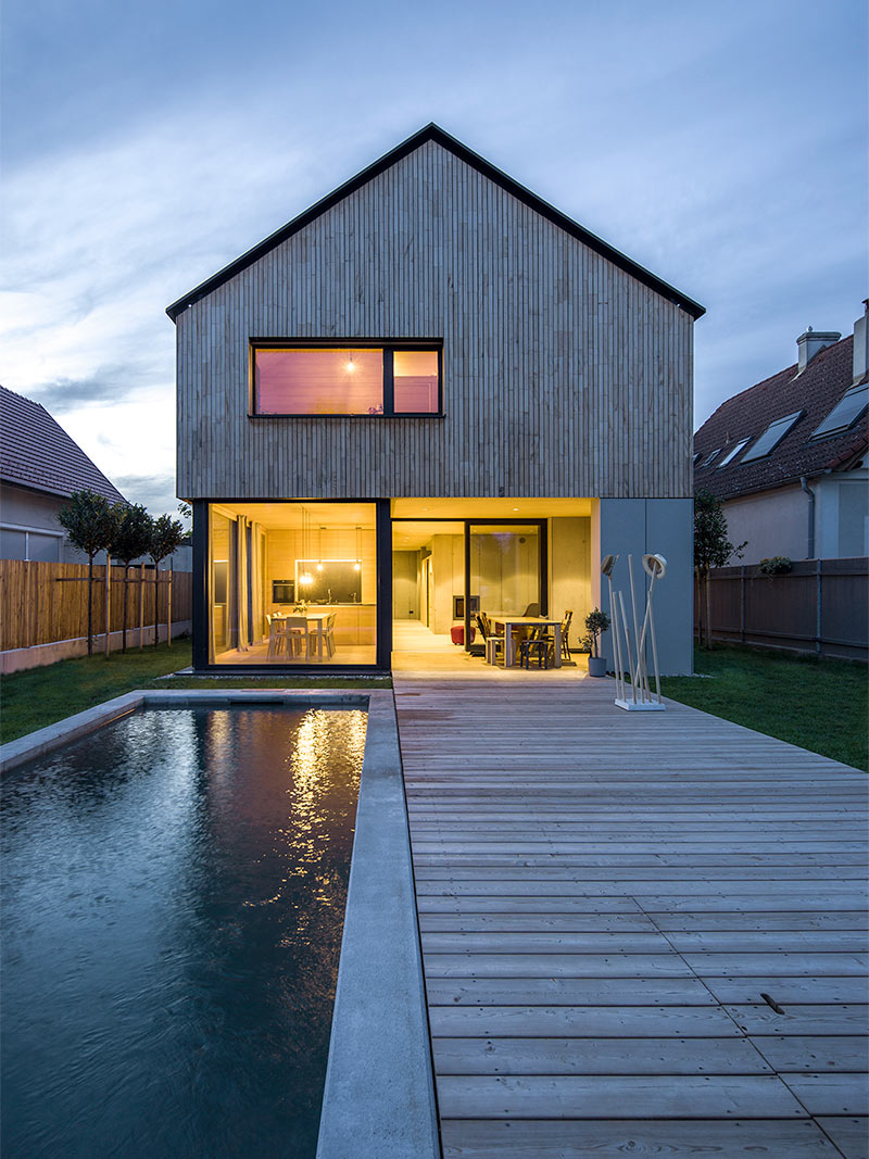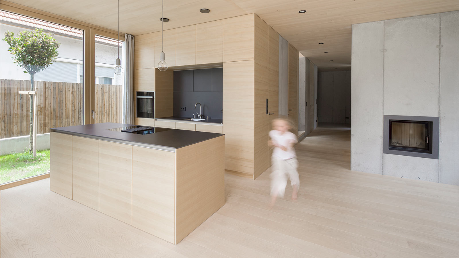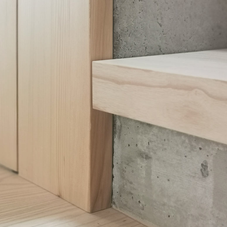 Treffen sich Holzoberflächen und Sichtbeton …