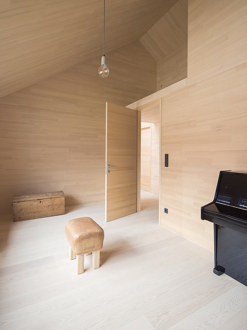 Decke und Obergeschoss aus Massivholz in Weißtanne